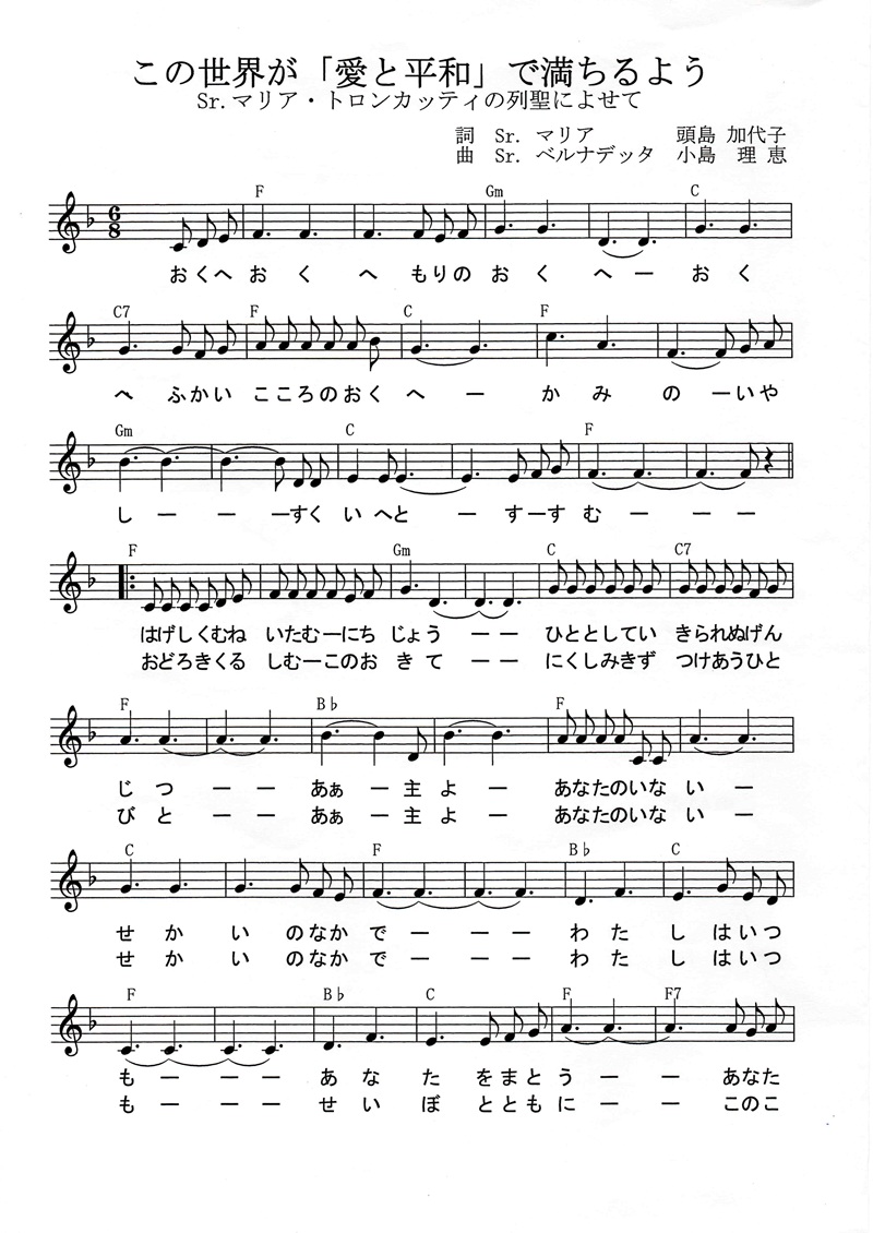 Sr.マリア・トロンカッティの列聖によせて作られた賛歌『この世界が「愛と平和」で満ちるよう』を紹介いたします。