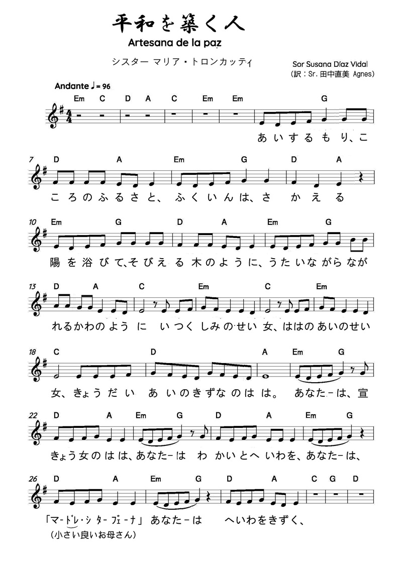 Sr.マリア・トロンカッティの列聖の公式賛歌を日本語に訳した『平和を築く人』を紹介いたします。
